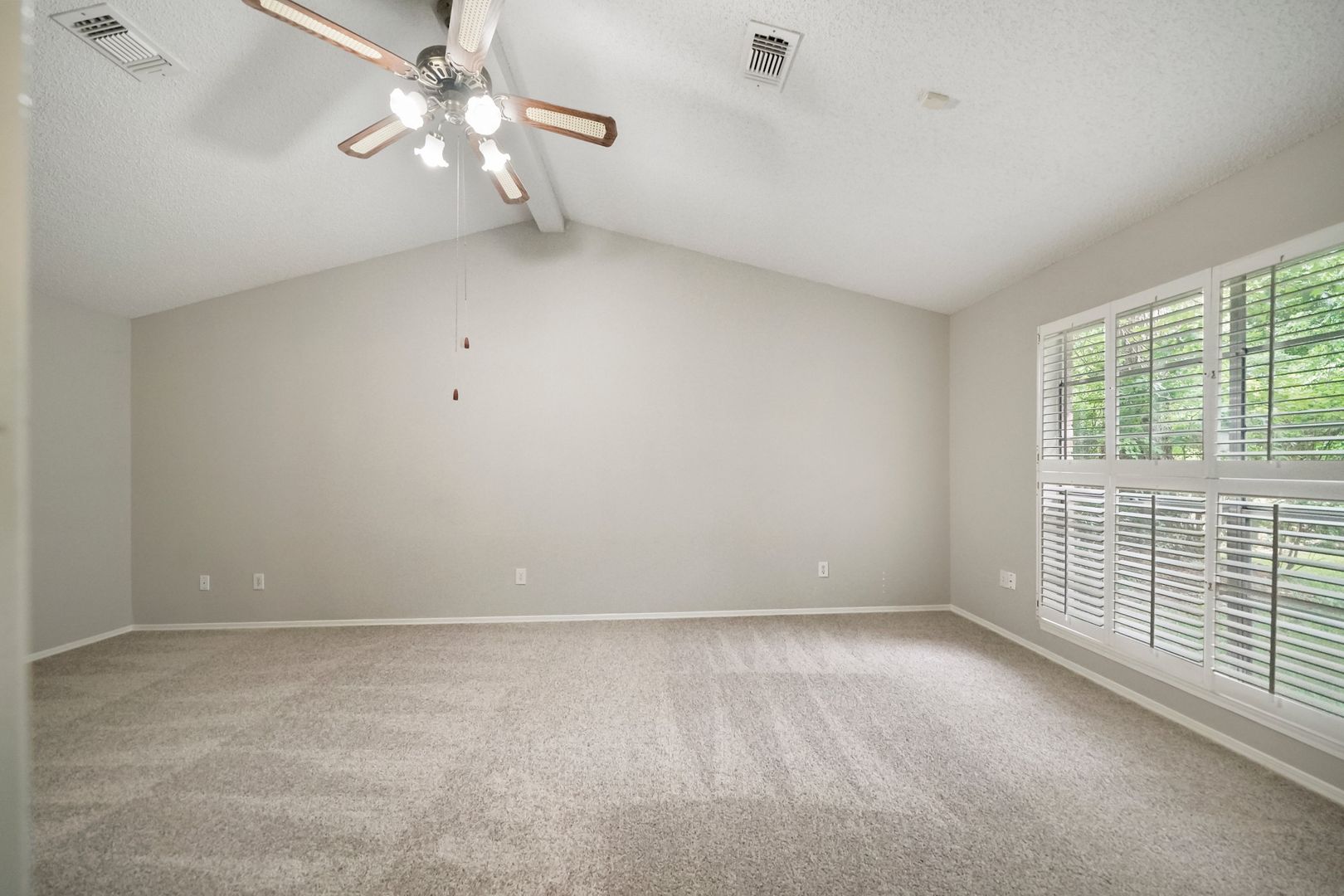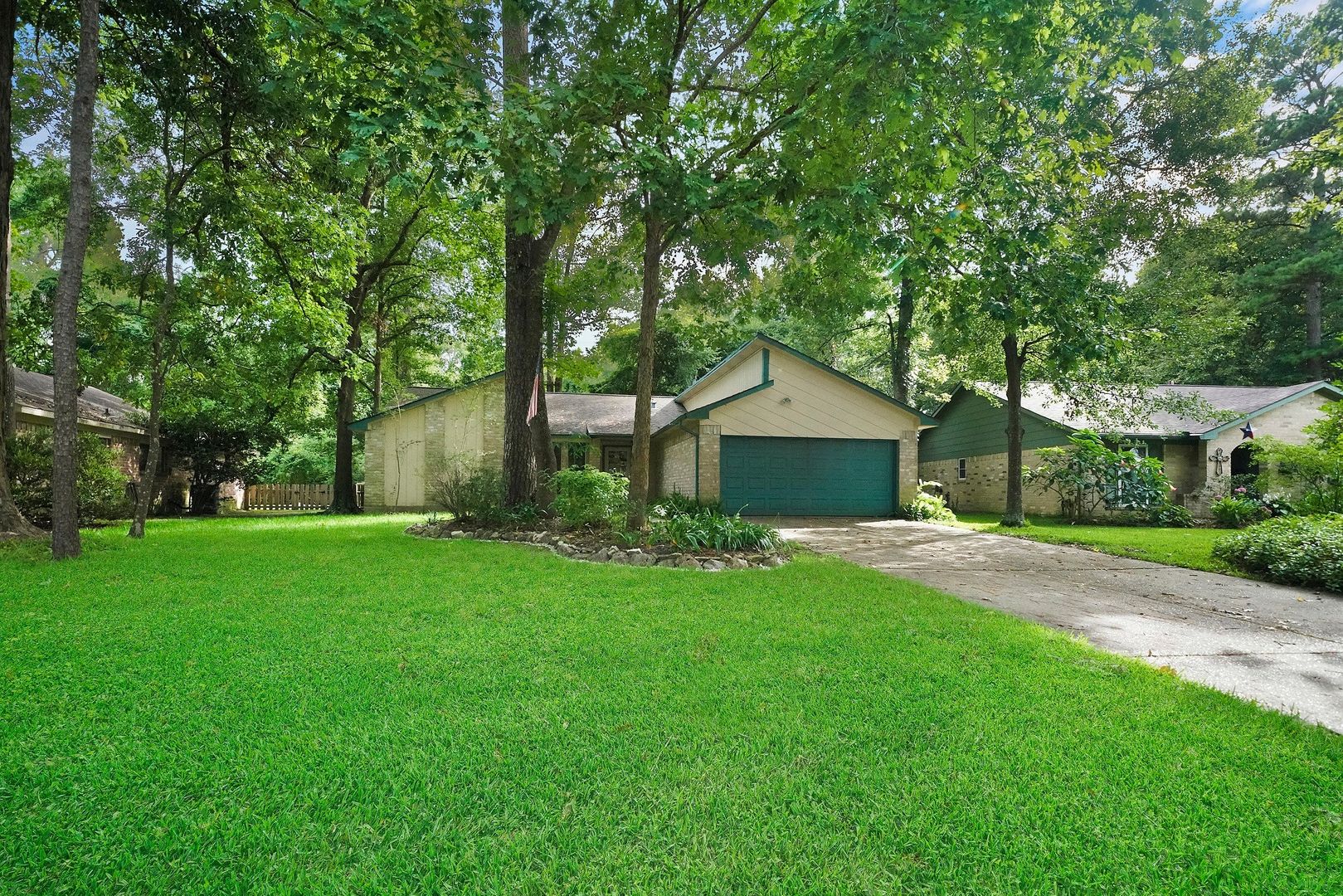 Beautiful 1-story well cared-for home in a great neighborhood! New flooring in dining room, living room, halls and baths. Bedrooms all have new carpet! Family room has cathedral ceilings and a corner gas log fireplace. Spacious master with sitting area that overlooks the backyard, 2 walk-in closets & hi ceilings. Backyard greenbelt. 2011 new water heater, 2012, recent sprinkler system, 2014 roof, recent HVAC, deck redone, per owner. Not flooded.